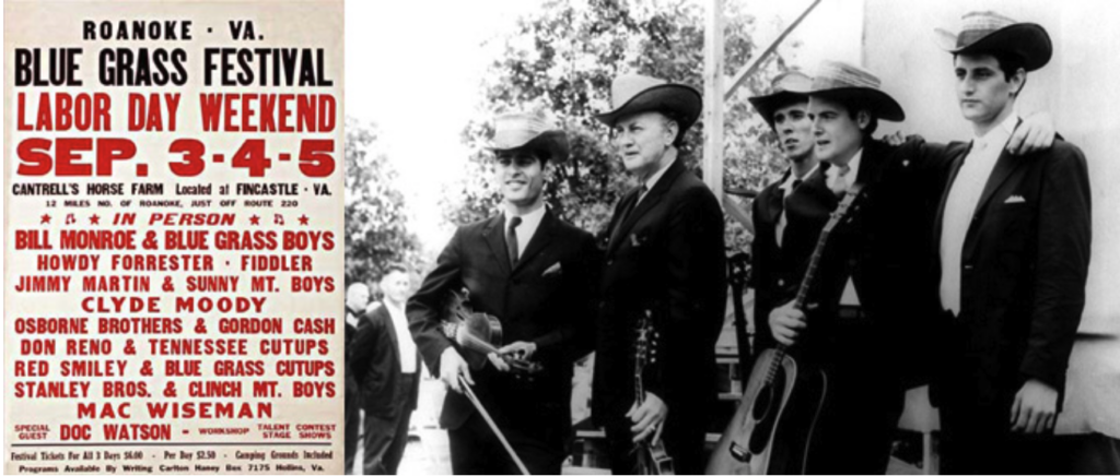 Promoter Carlton Haney held the first multi-day Bluegrass festival at Fincastle, VA in September of 1965. This set a precedent that has blossomed into hundreds of Bluegrass festivals each year and arguably provides most of the opportunities for people to experience live Bluegrass music today.